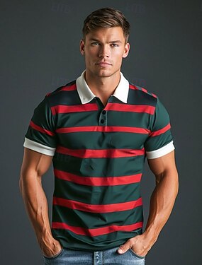 Miesten Geometrinen Viiva Vohveli poolopaidat Lyhythihainen Poolopaidat Kauluspaidat Business Casual liiketoiminta Urheilu- ja treenivaatteet Käytä töihin 3D-tulostus Napit Kesä Sininen Rubiini Apila