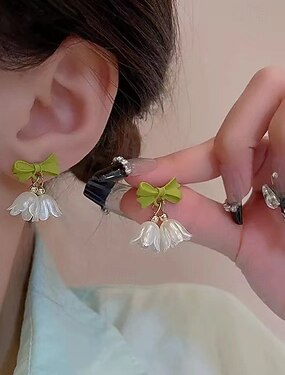 Söpöt rusetti- ja kellokukkakorvakorut – vihreä hartsirusetti ja valkoinen liljakorvakorut naisille