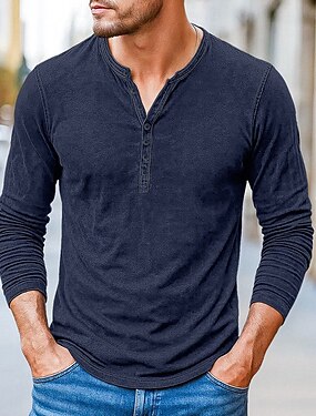 Miesten T-paita Henley-paita Väripalikka Henley Katu Loma Pitkähihainen Vaatetus Muoti Suunnittelija Perus