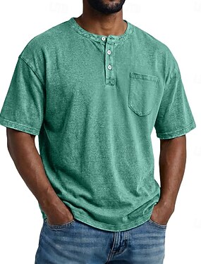 Miesten Henley-paita 100 % puuvillahappopesupaita T-paita Lyhythihainen Henley Syksy Talvi Retro Muoti Suunnittelija Nostalginen Haalistunut Muoti Vintage Loma Katu Bile Laivasto Musta Vaalean vihreä