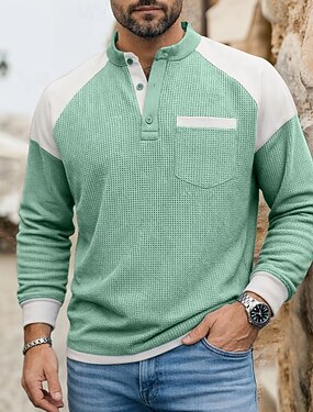Miesten Vohveli T-paita T-paita Pitkähihainen Henley Syksy Syystalvi Kaikki vuodenajat Yhtenäinen väri Pintakäsitelty Perinteinen / Vintage Vapaa-aika Tilkkutäkki Kausaliteetti Koti ulko- Vaalean