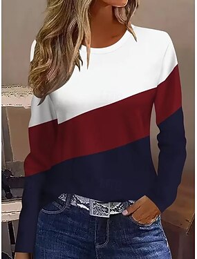 Naisten T-paita Painettu Kuvitettu Raidoitettu Vintage Muoti Tyylikäs Pitkähihainen Tiukka pyöreä kaula-aukko Pyöreä kaula-aukko Tavalliset topit Päivittäin Viikonloppu Rubiini Kesä Kevät Syksy