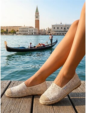 Naisten valkoiset pitsi-espadrille-pohjalliset – elegantit trooppisen saaristyyliset, hengittävät slip-on-kengät Välimeren risteilyille ja rantalomakohteille
