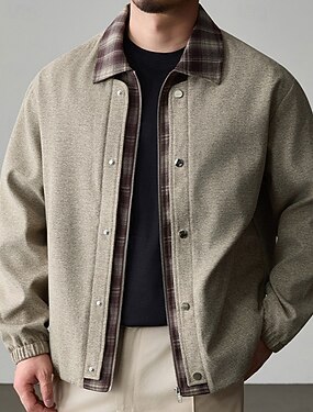 Miesten Jakku Rento takki Loma Päivittäin Pidä lämpimänä Tasku 2 in 1 Syksy Talvi Skottiruutukuvio Muoti Klassinen Kauluskäänne Normaali Musta Khaki Jackets