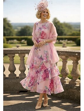 Kaksiosainen A-linja Polven yli Häävieraspuku Morsiammen äidin asu Hihaton 3/4 hiha Tiukka pyöreä kaula-aukko Tyylikäs Yksinkertainen minimalistinen Muodollinen Puolivirallinen Sifonki Jakardi kanssa
