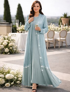 Kaksiosainen A-linja Nilkkapituinen Helmillä koristeltu Juhlamekko Coctail-asu Morsiammen äidin asu Pitkähihainen Olkaimeton Tyylikäs Kimmaltava ja hohtava Muodollinen Häävieras Puolivirallinen