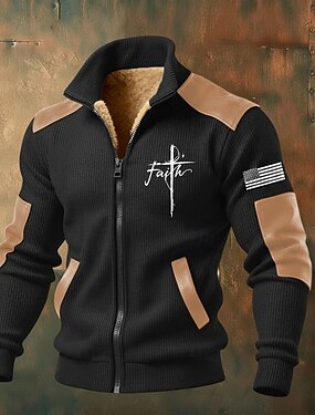 Miesten Täysi vetoketjullinen huppari Fleecetakki Fleece -huppari Musta Valkoinen Armeijan vihreä Laivaston sininen Ruskea Pystykaulus Risti Amerikan lippu Usko Tasku Keinonahkaiset aksentit Urheilu
