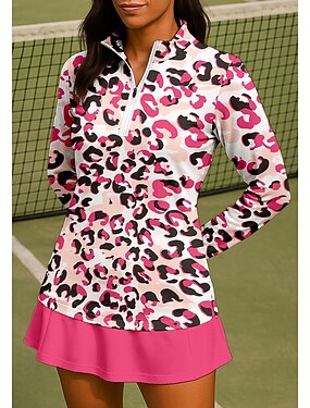 Naisten Leopardi Pusero Urheilupaita Poolopaita Tennispaita Pitkähihainen Vetoketju Kukka-aihe UPF50+ UV-vastustuskykyinen Erittäin elastinen Kosteuden siirtävä Hengittävä Tennis Golf Pickleball
