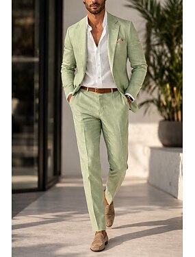 Miesten Smokit Pellava puvut Ranta häät Kausaliteetti Salvia Syreeni Kevät, Syksy, Talvi, Kesä Puku Kevyt Yhtenäinen Normaali istuvuus 2-osainen setti Yksirivinen yksi nappi