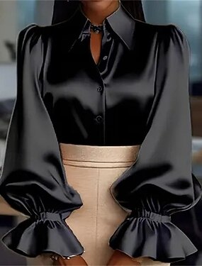 Naisten Paita Tyylikäs Muotitietoinen Satiinitoppi Rypytetty Tilkkutäkki Napit Yhtenäinen väri Tavallinen Tyylikäs Vintage söpö tyyli Pitkähihainen Puhvihiha Paitapuserokaula-aukko Tavalliset topit
