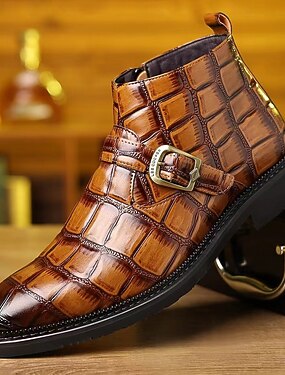 Miesten ruskeat krokotiilikuvioiset keinonahkaiset slip-on-saappaat - tyylikkäät muodolliset jalkineet työ- ja juhlatilaisuuksiin