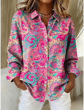 Naisten Paita Pusero Painettu Paisley-kuvio Tyylikäs Moderni Vapaa-aika Pitkähihainen Paitapuserokaula-aukko Tavalliset topit Työ Punastuvan vaaleanpunainen Rubiini Apila Kesä Kevät Syksy Talvi