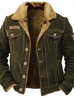 Miesten 1776 Fleecetakki Cargo takki Sherpa takki Taktinen Pidä lämpimänä Vintage ulko- Koti Kirjailtu Useita taskuja Talvitakit Syksy Talvi Fleece-taittokaulus Pitkähihainen Armeijan vihreä Tumman