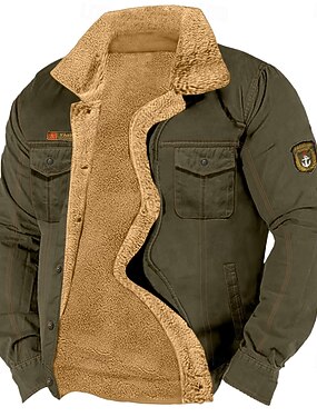 Miesten Talvitakki Fleecetakki Rento takki Päivittäin ulko- Pidä lämpimänä Jakardi Tasku Syksy Talvi Lippu Väripalikka Katutyyli Päivittäin Stand-kaula-aukko Normaali Musta Valkoinen Khaki Armeijan