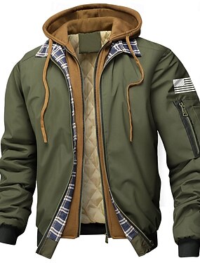 Miesten Kuvitettu Yhdysvaltain lippu Talvitakki Pehmustettu Hupullinen takki Pidä lämpimänä Urheilullinen Vapaa-aika ulko- Arkikäyttö Sulkea jnk vetoketju Säädettävä kiristysnauha Ruutuvuoratut