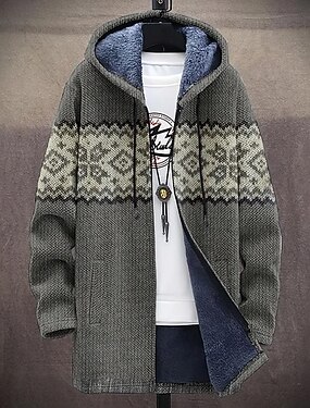 Miesten Kuvitettu Talvitakki Fleecetakki Takki Pidä lämpimänä Mukava Vapaa-aika Arki-asut Vetoketju Tasku 3D-tulostus Syksy Talvi Hupullinen Pitkähihainen Harmaa