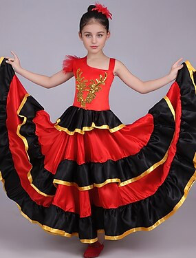 Tyttöjen Flamenco Senorita Tanssia Tango-tanssiasu Tyylikäs Polyesteri Rubiini Hame / Lasten
