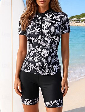 Naisten Ihottumissuoja Uimapuku 2-osainen Trooppinen Sulkea jnk vetoketju UV suoja Elastinen Lyhythihainen Uima-asut Uimapuku Lainelautailu Sukellus Uinti Kesä