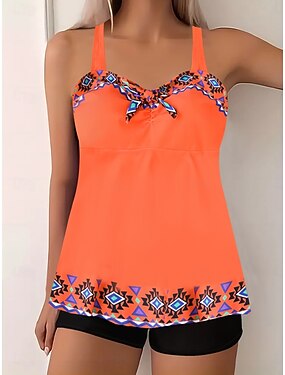 Naisten tankini 2-osainen uimapuku shortsit selkä avoin lomarannalle graafinen U-kaula-aukkoinen hihaton uimapuku