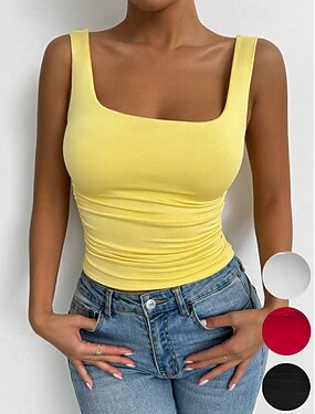 Naisten Camisole Tank Top Yhtenäinen väri Tyylikäs Vapaa-aika Hihaton Nelikulmainen kaula-aukko Tavalliset topit Päivittäin Valkoinen Keltainen Viini Rubiini Laivastosininen Kesä