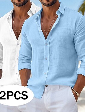 Miesten Paita Pellava paita Kesä paita Ranta-asut Button Up paita Tavallinen Loma Curise Valkoinen+vaaleanpunainen Valkoinen + khaki Musta + tummanvihreä Harmaa+khaki Pitkähihainen Kauluskäänne Kes