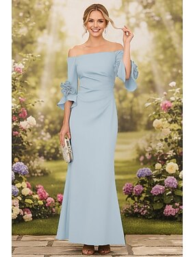 Trumpetti merenneito Kokopitkä Häävieraspuku Muodollinen mekko Iltapuku Tanssiaismekot Tyylikäs Puolihiha Olkaimeton Tanssiaiset Muodollinen Joustava kangas kanssa Kirjailtu kukka Solid Color