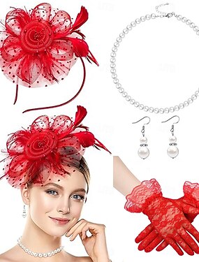 Käsineet Kaulanauha Kiehtova Lempeä nainen Kukka-aihe Naamiaispuku Naisten Naamiaiset Teekutsut Ascot Hevoskilpailufestivaali Aikuisten Päähine Käsineet Korvakorut Kaikki vuodenajat