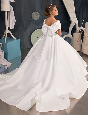 Tanssiaismekko Hipaisulaahus Kukkaistytön asu Ensimmäinen ehtoollinen Tyttöjen Suloinen juhlamekko Satiini kanssa Rusetti(rusetit) Tyylikäs Sopii 3-16 vuotiaille