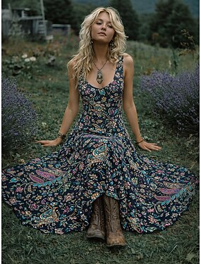 Naisten Midimekko Boho-mekko Rento mekko Kellomekko Kesämekko Vintage Hiekkaranta Normaali Kukka Kuvitettu Hihaton Tiukka pyöreä kaula-aukko Musta Valkoinen Punastuvan vaaleanpunainen Kesä Kevät