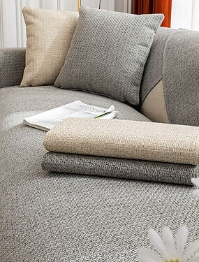 Pellavainen sohvatyynynpäällinen, yksivärinen moderni minimalistinen päällinen, liukumaton ja koko vuoden ajan kattava sohvansuoja, lemmikkiystävällinen