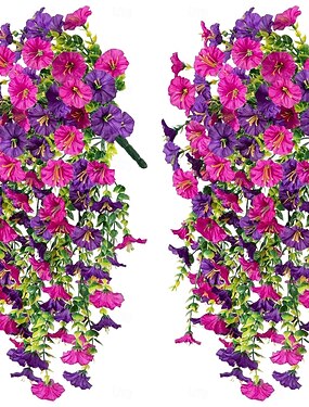2/4 kpl keinotekoisia roikkuvia kukkia ulkokäyttöön, kevät-kesäkoristeluun, tekosilkkiä, UV-kestävä, realistinen, aamunkoittoköynnös, kodin kuistille, terassille ja parvekkeelle