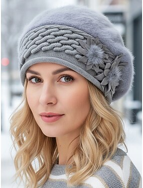 Naisten talvinen 3D-kukkabaretti – pehmeää tekoturkista fleecevuorilla, tyylikäs neulosmalli, saatavilla useissa väreissä, täydellinen kylmään säähän ja juhlavaatteisiin