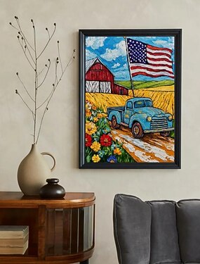 käsintehty öljymaalaus kankaalle seinätaidekoriste amerikkalainen maatalousmaisema tähdet raidat kodin sisustukseen rullattu kehyksetön venyttämätön maalaus