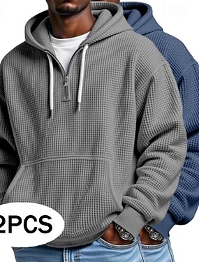 Miesten Huppari Vohvelihupparit Pullover-huppari Quarter vetoketjullinen huppari Aprikoosi Viininpunainen Valkoinen Vaalean vihreä Armeijan vihreä Hupullinen Tavallinen Kengurutasku Textured