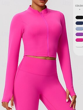 Naisten Urheilutakki Pilates-takki Joogatakki Stand-kaula-aukko Aurinkovoide Venyvä Hengittävä Sulkea jnk vetoketju Pitkähihainen Urheilu Yhtenäinen väri Topit varten Juoksu Kunto Jooga