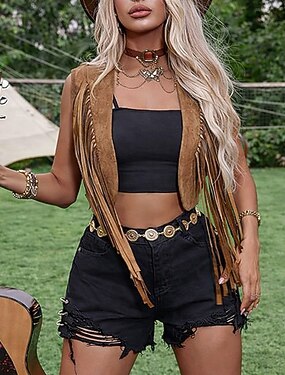 Retro / vintage 1970 luku Disko Mokkamainen liivi Hihaton Hippi Disko Tupsu Naamiaispuku Naisten Halloween Karnevaali Naamiaiset musiikkifestivaali Suoritus Pride-paraati Aikuisten Liivi