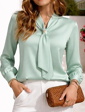Naisten Tyylikäs Satiinitoppi Pusero Mekkoiset topit Rypytetty solmio edessä Tilkkutäkki Tavallinen Tyylikäs Vintage Klassinen Pitkähihainen Solmittava kaula Tavalliset topit Päivittäin Työ Pyhäpäivä