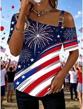 Amerikan itsenäisyyspäivä Naisten Paita Satiini paita Napita paita Rento paita Painettu Kuvitettu Raidoitettu Klassinen Vapaa-aika Pitkähihainen Paitapuserokaula-aukko Tavalliset topit Päivittäin