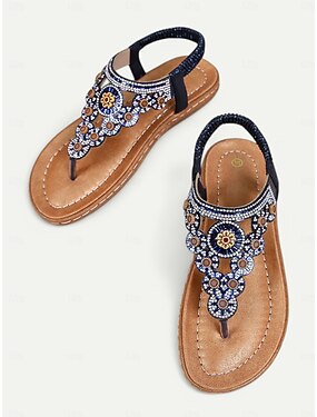 naisten helmillä koristellut kukkasandaalit – tyylikkäät boho-tong-sandaalit tekojalokivikoristeilla kesään, rantaan ja vapaa-aikaan