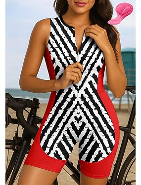 Naisten Triathlon Tri -puku Lyhythihainen Maastopyöräily Maantiepyöräily Kesä Kevät Syksy Musta Valkoinen Punainen Kuviollinen Pyörä Nopea kuivuminen Pehmeä Takatasku Hikeä siirtävä Elastinen Urheilu