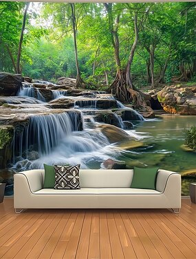 moderni metsäinen vesiputous trooppinen maisemakuvakudos luonnonkaunis seinävaate makuuhuoneeseen olohuoneeseen asuntolaan yliopistohuoneeseen kodinsisustukseen valokuvatausta