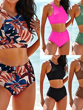 Naisten Bikinisetit 2-osainen uimapuvut Yhtenäinen UV suoja Elastinen Hihaton Uima-asut Uimapuku Lainelautailu Sukellus Uinti Kesä