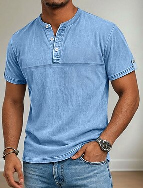 Miesten Henley-paita 100 % puuvillahappopesupaita Lyhythihainen Henley Kesä Kevät Syksy Tavallinen Retro / vintage Vapaa-aika Vintage-tyyli Pesty Kausaliteetti Vaalean sininen Tumman ruskea Musta Top