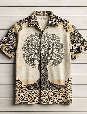 Miesten Elämän puu Paita Kesä paita Rento paita Lyhyt hiha Havaijilainen Vapaa-aika Lomakeskus Hiekkaranta Loma Arki-asut Kesä Kauluskäänne Painettu Tumman ruskea Ruskea Khaki