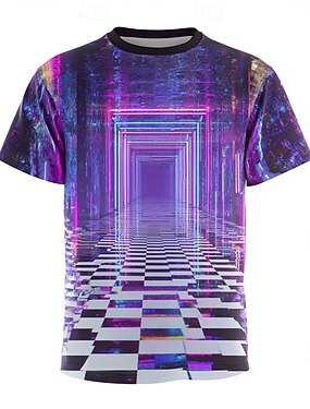 miesten neonvioletti sininen ääretön tunneli ruudullinen lattia synthwave retrowave vaporwave cyberpunk trippy psykedeelinen t-paita tavallinen festivaali rave juhlavaatteet s m l xl xxl xxxl