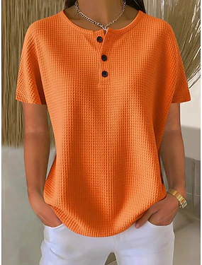 Naisten Ylisuuri T-paita T-paidat Vohvelineuletoppit Napin edessä Tavallinen Muoti Tyylikäs Klassinen Lyhythihainen Tiukka pyöreä kaula-aukko Henley Tavalliset topit Päivittäin Bile Viikonloppu