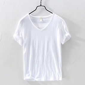 Miesten T-paita Pellava T-paita Lyhythihainen Lyhyt hiha Tiukka pyöreä kaula-aukko Kesä Tavallinen Muoti Suunnittelija Perus Soft Loma Katu Kausaliteetti Vaalean sininen Musta Valkoinen Top T-paita