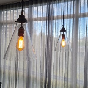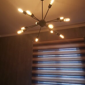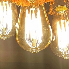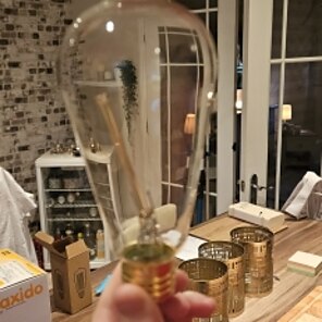 Erittäin kauniit hehkulamput antavat lämmintä valoa. Ne eivät ole yhtä kirkkaita kuin hehku-LED-lamput ja sopivat täydellisesti kokonaisuuteen, katso kuva Kuvassa 2 lamppua on vaihdettu. Et näe eroa vanhoihin ja: ne kestävät yllättävän kauan yli 2 vuotta säännöllisellä käytössä!