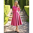 A-linja Polven yli Cocktailmekot Juhlamekot Tyylikäs minimalistinen 3/4 hiha Pyöreä Häävieras Juhlavaatteet Syksyinen häävieras Satiini kanssa Laskokset |