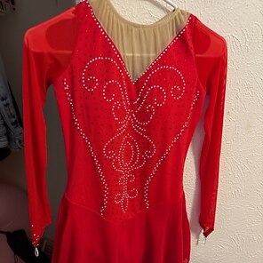Beautiful dress that fit perfectly. The crystals are good quality and the dress cut was perfect. The fabric on the sleeves was also very elastic despite being black fabric
